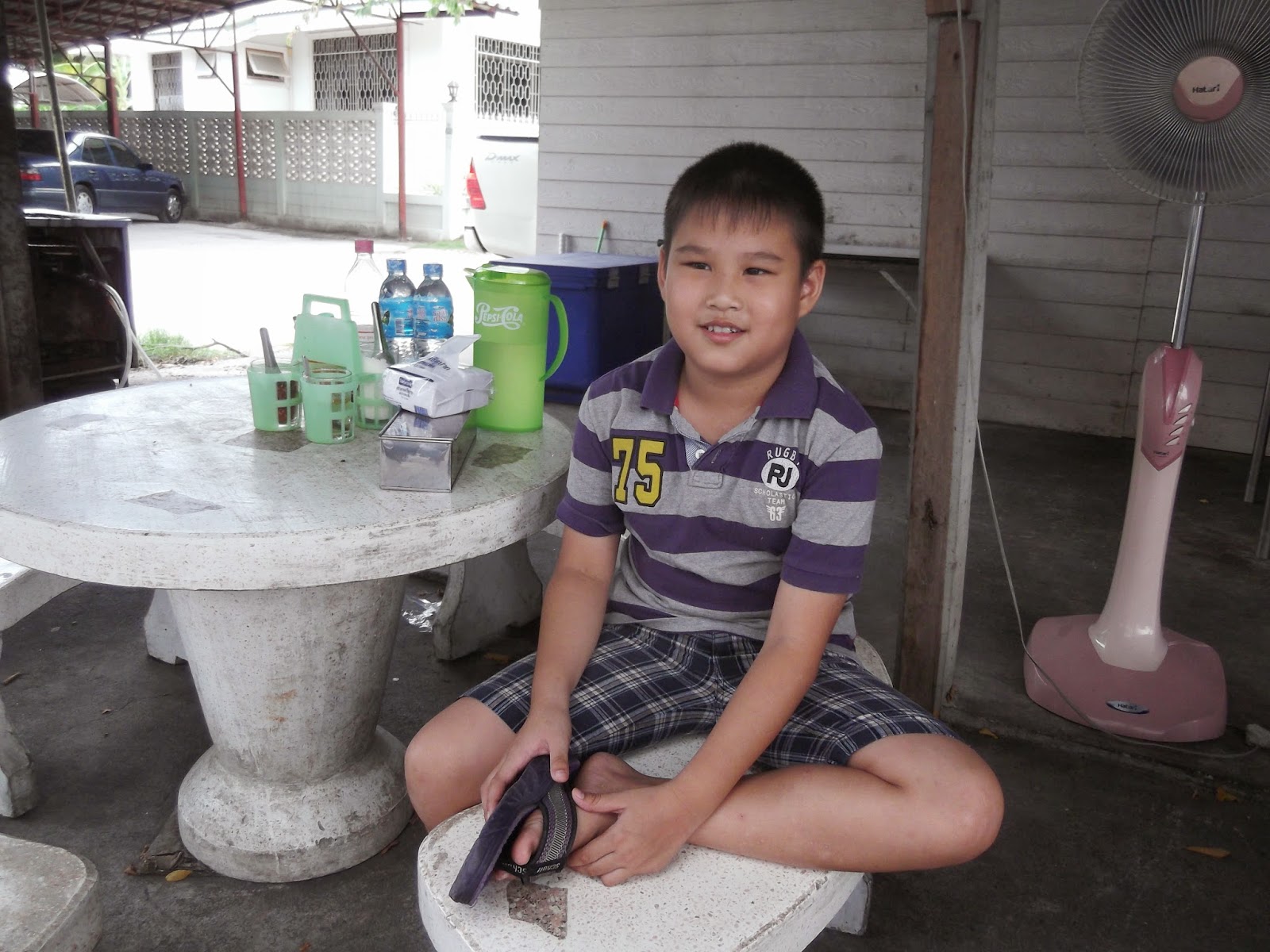 gian này, trẻ em Thái đang nghỉ hè. Cậu bé con chủ quán, khoảng 7-8 tuổi, rất